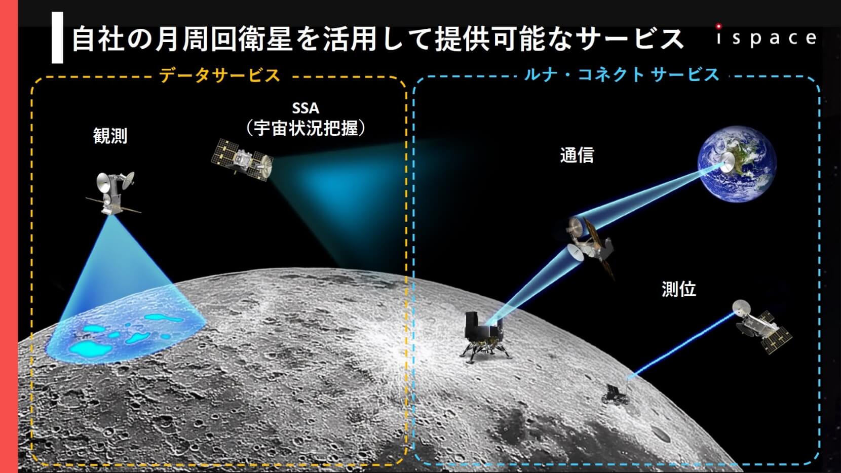 そして新たに加わったのが、衛星を月周回軌道へ投入し、高速の通信機能や測位サービスを提供する「ルナ・コネクトサービス」だ。月で活動する上での課題の一つが実験データなどの通信環境だ。通信バンドが細いとなかなか大容量のデータを送ることができない。その課題がクリアされれば、月面での実験などがやりやすくなる。同様に月面上を移動するには測位機能が必要となる。つまり、月面に顧客の荷物を運ぶだけでなく、運んだ後の月面活動を多彩に効率的に行う環境を整えることで、輸送サービスとの相乗効果があるということだ。2027年に最初の1機を、2030年までに5機の自社衛星を月周回軌道に投入予定だという。