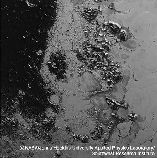 その位置づけはどうあれ、冥王星は何しろ遠い。現在の地球からの距離は約48億km。太陽と地球の距離の30倍以上であり、光でさえ4時間もかかる。しかも冥王星はとても小さい。これまでの推定直径は2300~2400km、つまり3500kmほどの月よりも小さいのだ。小さくて遠くにあるため、その素顔はよく見えなかった。ある程度の明暗模様が表面にあることくらいはわかっていたが、ほとんど謎に包まれたままであった。ただ、表面は46億年前にできあがってから、ほとんど変化してないだろうと予想されていた。表面を変える内部の熱源も少ないと思われていたからである。充分な熱があれば、氷が液体となって吹き出し、溶岩のように覆うことでその表面は更新される。しかし、小さな天体であれば、内部の熱源となる放射性壊変元素の含有量は少なく、火山のような地質学的活動は起こらないはずで、冥王星の表面は古いまま、月や水星のように、表面には衝突クレーターが無数に残されているに違いないと思われていたのである。