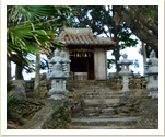 川平公園内にある川平観音堂。ガジュマルや南国の植物に囲まれています。