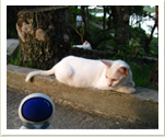 Dスペェスケ、猫と遭遇。「初めてみる顔だニャ」
