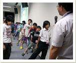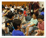 古川飛行士との交信前に、子供達が熱狂したのがワークショップ「ミッションX」。2011年1月にNASAが発表したプログラムで、宇宙飛行士の訓練や健康管理のノウハウを、世界の子供達の健康な食事や運動習慣に活かそうというもの。世界の宇宙機関が協力して取り組んでいる。この日のワークショップも「重力を感じよう」をテーマにJAXA宇宙医学生物学研究室の山田深さんが、東京会場の子供達に指導。かんたんな運動をやっていくうちに、自分では気づかないけれど、地上の重力に合わせて身体がうまく連動して働いていることを実感できる。
