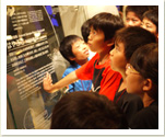 未来館の施設見学では宇宙の解説ボードに熱心に見入る。
