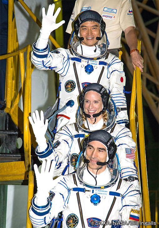2016年7月7日、ソユーズロケットに乗り込む直前の大西飛行士。(提供:JAXA/NASA/Bill Ingalls) 大西:箱に入っていれば大丈夫なんですよ。だからエレベーターも大丈夫。ただ、ビルの屋上とかで、手すりから身を乗り出すのはダメ。