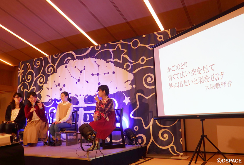 続いて天野慶さんと現役大学生たちによる「宙歌ワークショップ」が行われた。宙を題材にしてもっと気軽に歌を詠めたら、日々の暮らしも豊かになりそう。天野さんによるポイントは「みんなが思っていることを違う言い方で。みんなが思っていないことを普通の言い方で表現すること」らしい。なるほど!原稿を書く時にも使えそうです。