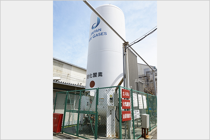 与田さん:オゾン発生装置の場合、先ほどご案内した神戸製作所内にある試験棟で装置を実際に動かして検査を行っています。オゾン発生装置の検査では、タンクに入っていた液体酸素を気体にしてオゾン発生装置に入れ、電気をかけてオゾンがきちんと作られるか確認します。