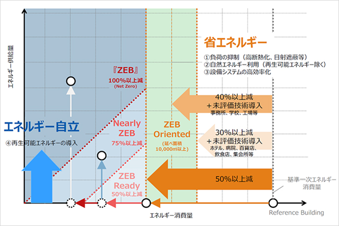ZEBにはいくつかのカテゴリーがありますが、既存の建物でZEBを目指す場合はまずどのように取り組むのがいいでしょうか。