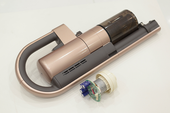山岸さん:やはり、電池の進化が一番大きなポイントだと思います。大容量電池が作れるようになったことでモーターに大電流を流せるようになり、風量を増やすことができるようになりました。昔のコードレスクリーナーはニッケル水素電池を使っていたので、あまり大きな電流を流せませんでした。最近は電池も進化し、それに対応した小型の高回転モーターの開発に成功したことが重なって、吸引力が大きく向上したと思います。