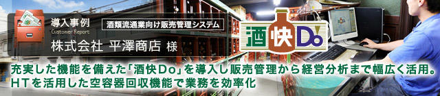 明治25年の創業以来、“酒どころ”京都で日本酒、焼酎、ビール、ウイスキーなどの業務用卸売販売を展開する株式会社平澤商店。同社は、2007年に三菱電機インフォメーションシステムズ株式会社(MDIS)が企画・開発し、株式会社三菱電機ビジネスシステム(MB)をはじめとしたビジネスパートナーが販売・サポートする酒類流通業向け販売管理システム「酒快Do(さけかいどう)」を導入し、販売データの可視化を実現しました。途中、2013年のシステム更新時には、オプションの「ハンディーターミナル(HT)による連携機能」を追加し、空容器回収業務や棚卸業務の効率化を図っています。