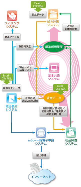 - ファイリングシステム: 取得喪失システムと連動し、業務の受託と帳票を管理