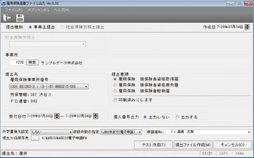 ■申請データ出力イメージ画面 雇用保険資格喪失届等の雇用保険データをファイル出力します。