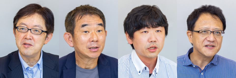 左から、 プロセス・オペレーション改革室 改革戦略部 専任 全社業務改革担当マネージャー 杉田 雅人氏、 プロセス・オペレーション改革室 改革戦略部 専任 全社業務改革担当マネージャー 石村 乃介氏、 プロセス・オペレーション改革室 改革戦略部 専任 全社業務改革担当マネージャー 藤原 秀明氏、 プロセス・オペレーション改革室 改革戦略部 専任 全社業務改革担当マネージャー 高原 徳文氏