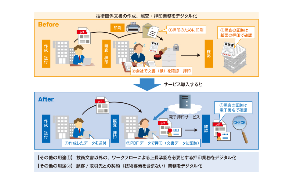 「従来、技術文書や社内向けの書類などには照査済や確認済であることを示す日付印を押していました。この日付印に相当する証跡が残せないと、これ以上のペーパーレス化はできないという声がユーザーから寄せられました」