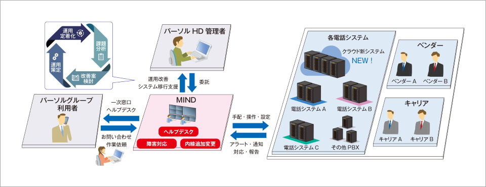 MINDに対しては、これまでの運用実績を評価して現在進行中のソフトフォンへの移行プロジェクトにもメインのベンダーとして参画を依頼し、移行後の運用支援も継続して要請する方針です。