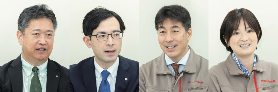 左から、資材部長 佐藤 要人氏、ワークスタイル変革推進室 参事 丸山 雅史氏、リフト事業本部 リフト部 リフト工事課長 伊藤 育生氏、工事本部 工事部 工務課 主査 小林 未紀氏