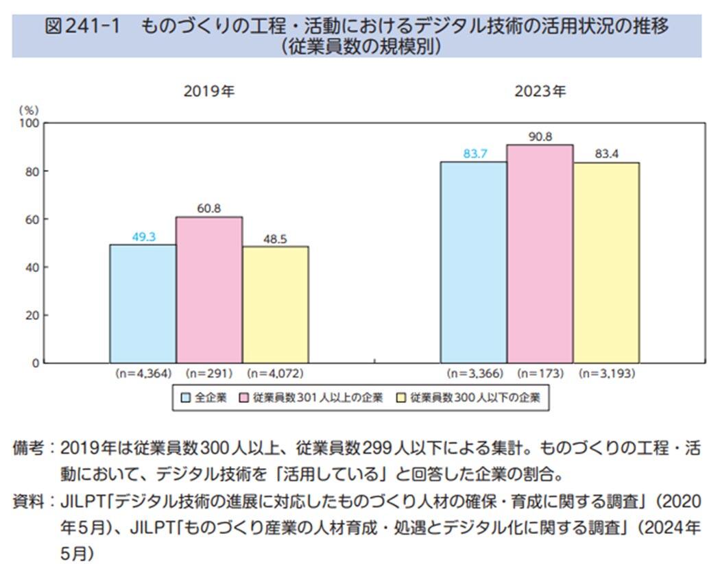 白書では、2019年に比べ企業規模の大小を問わず、8割以上の企業がデジタル技術の活用に力を入れていると記載されています。
