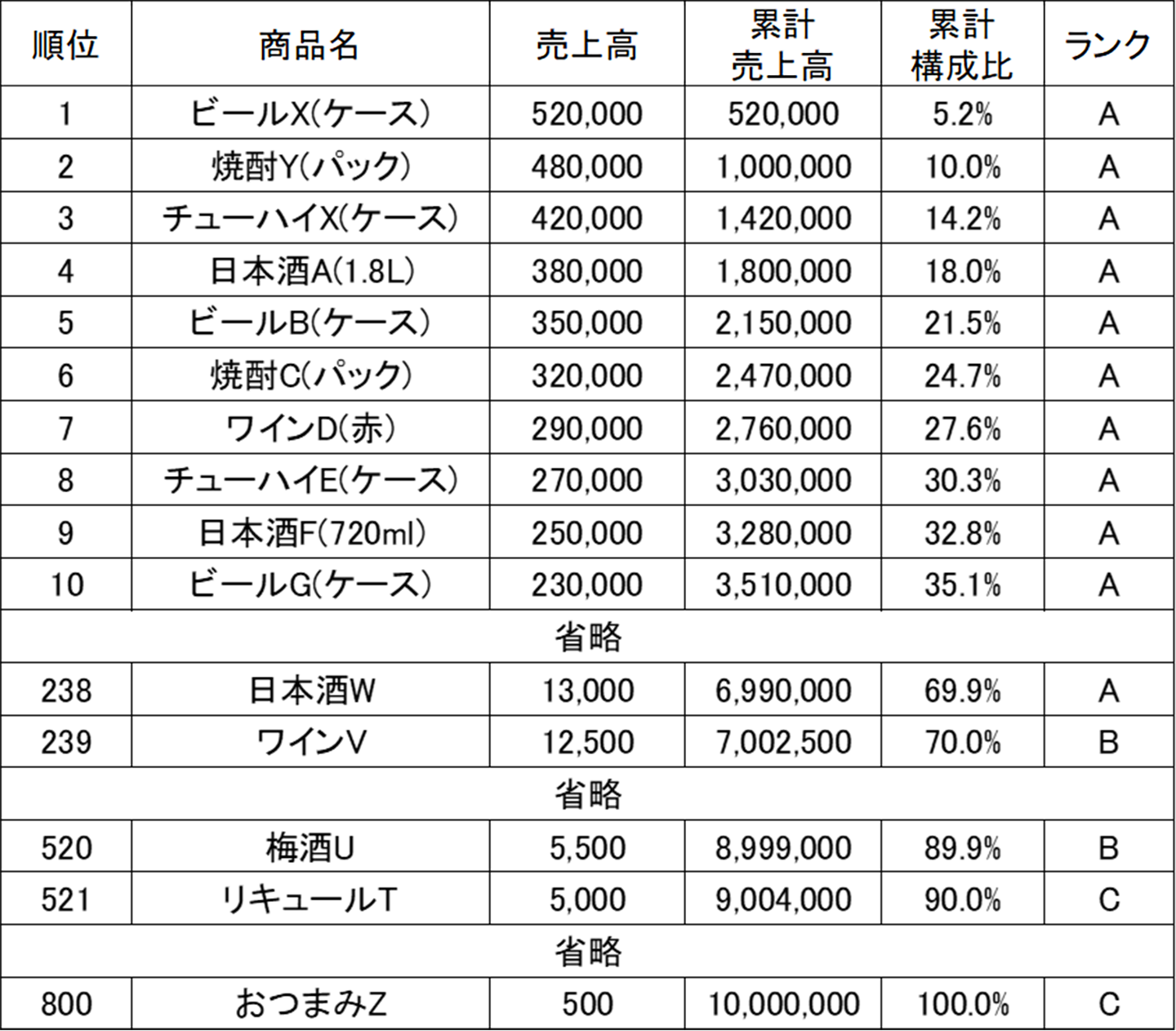 例えば、Bランクの地酒は蔵元と協力して試飲イベントを実施するなど、ファンづくりに取り組むことで、一部の商品がAランクに成長するかもしれません。
