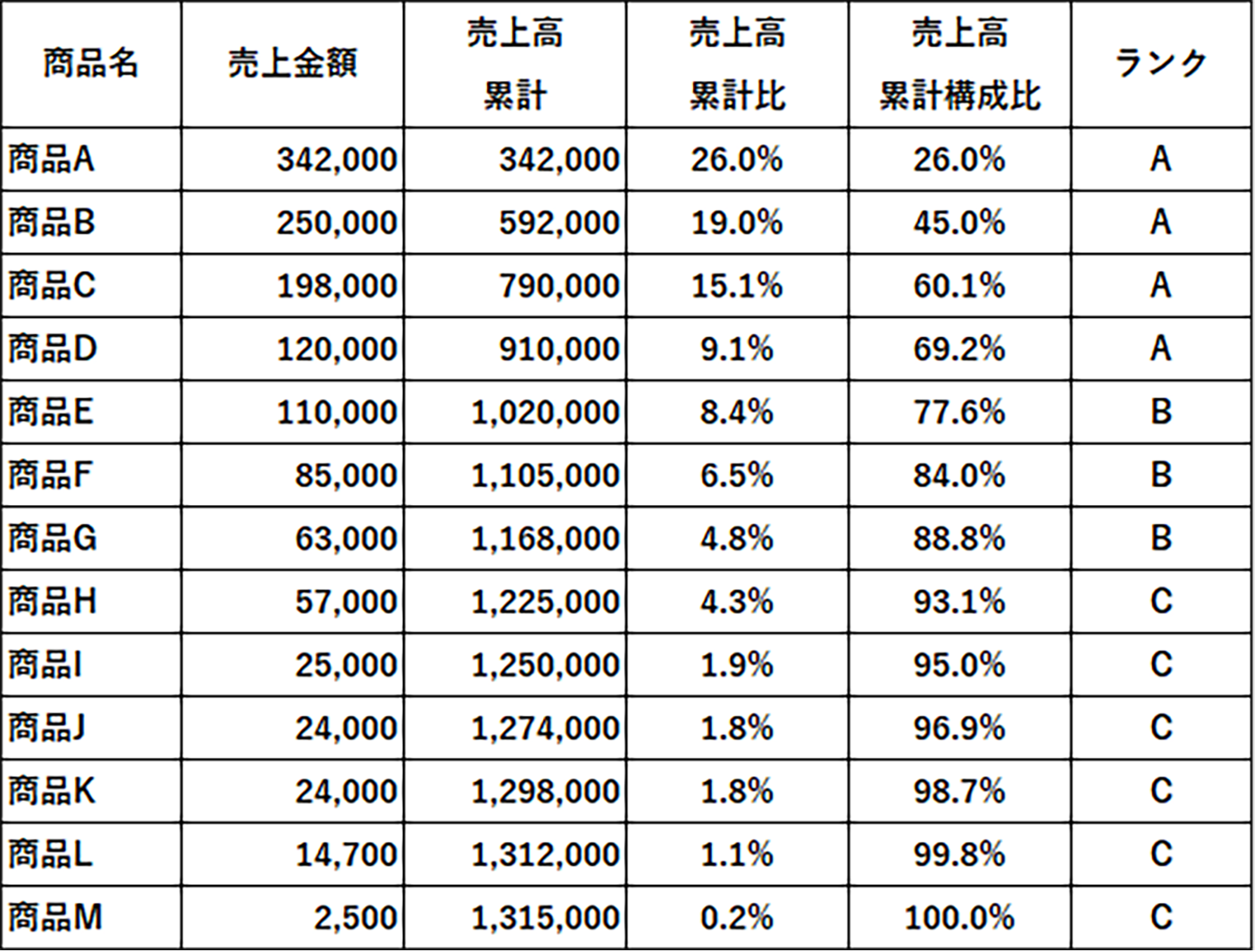 この店舗ではABC分析の結果を踏まえ、各ランクに応じた管理方針を以下の通り設定して取り組むことにしました。