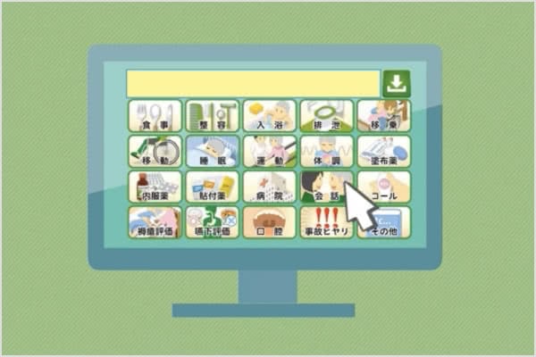 - マウスやタッチパネルで選択するだけで、統一した介護記録が作成可能