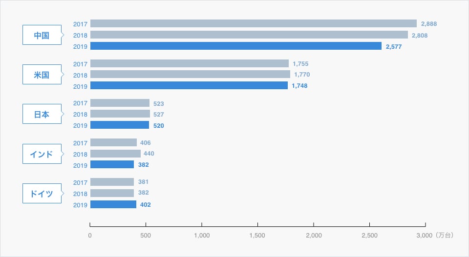 国別新車登録・販売台数(上位5カ国)