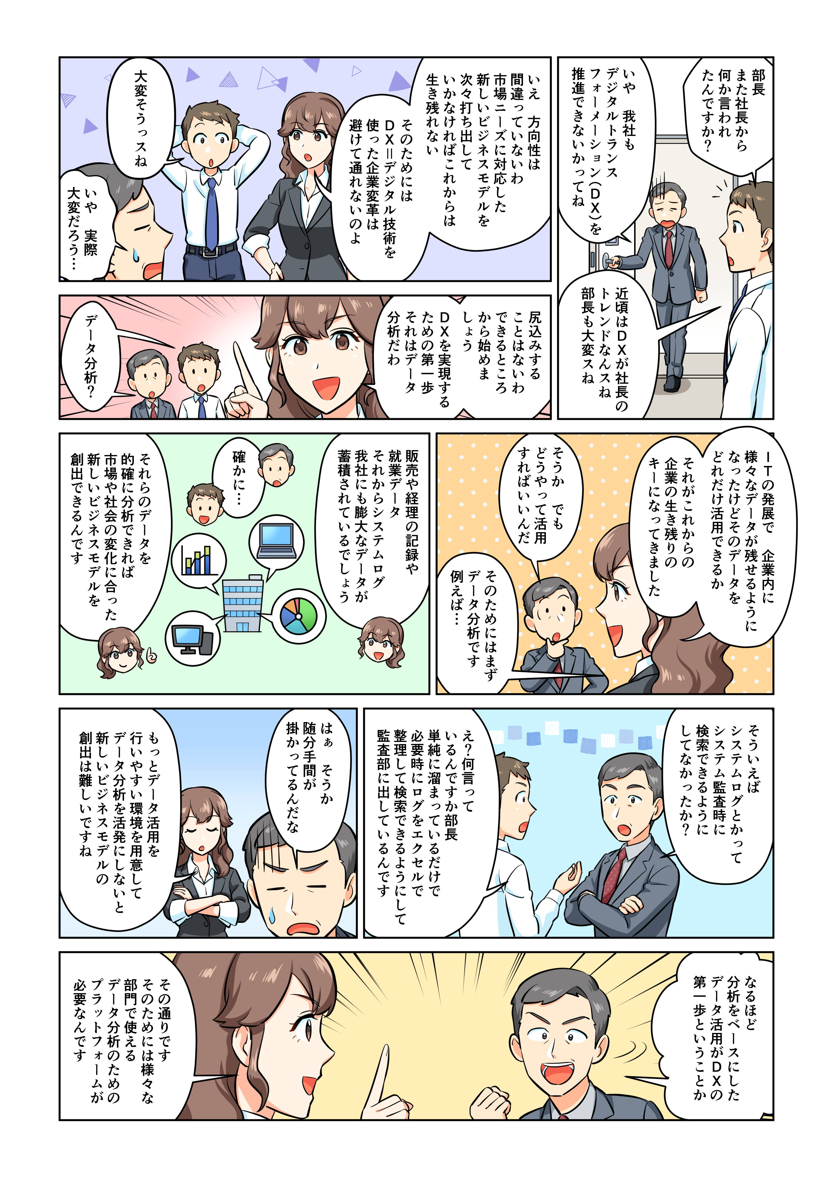 多種多様な⼤量データを統合・蓄積・分析するデータ分析基盤です。 ⾼性能データベースエンジンを搭載しているため、⼤量データを⾼速に検索することができます。販売分析、顧客分析、ログ分析、環境データ分析など、企業活動から⽣み出される⼤量データを分析し、現場から経営までの意思決定に活⽤いただけます。