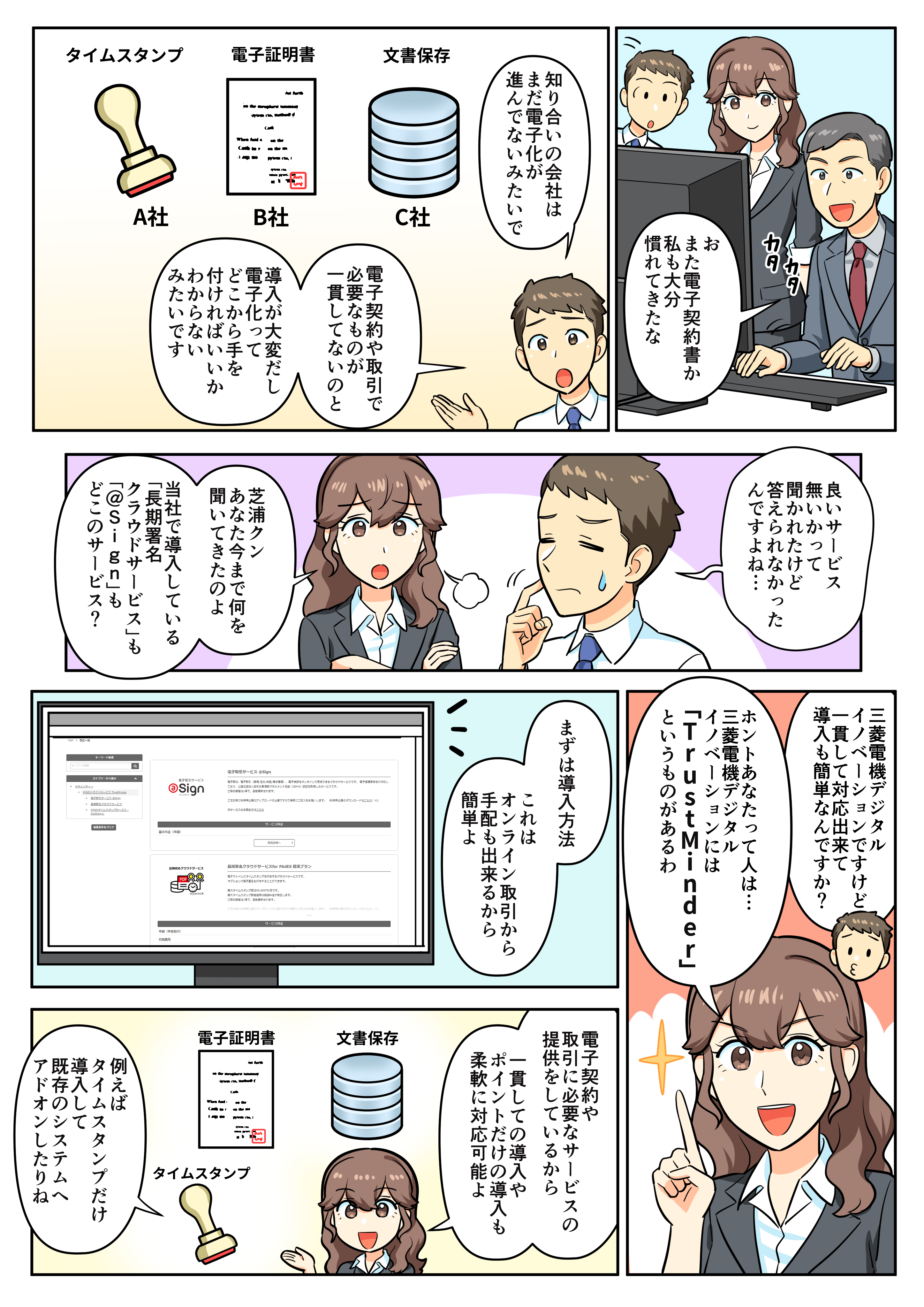 トラストサービス TrustMinderは、電子帳簿保存法に対応した電子契約/電子取引サービスから、長期署名サービス、タイムスタンプサービスまで、高品質なサービスをラインアップ。電子文書やデータの信頼性を守る安心、安全なデジタル環境の実現に貢献します。