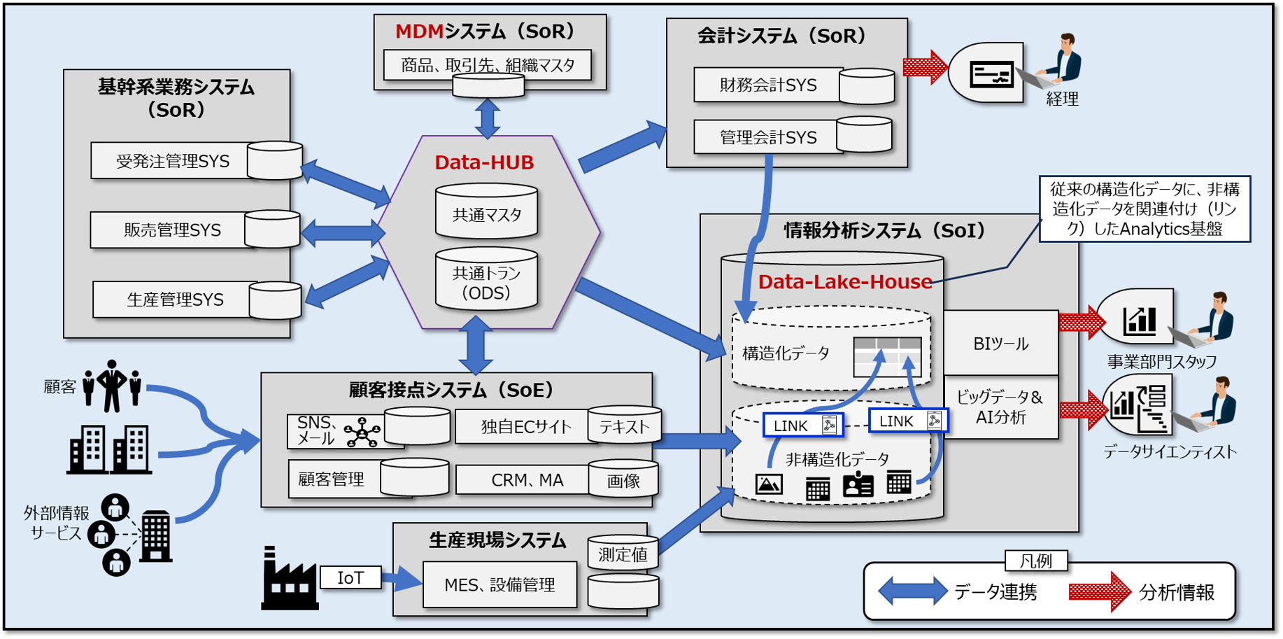 近年、インターネットの普及によるWeb系システムや、BI※による情報系システムが進展し、システムスコープは大きく拡大しつつあります。企業活動の大半がIT仕立てになるDX時代、EAのかたちはビジネスとITが一体化した新たなものへと変わろうとしています。
