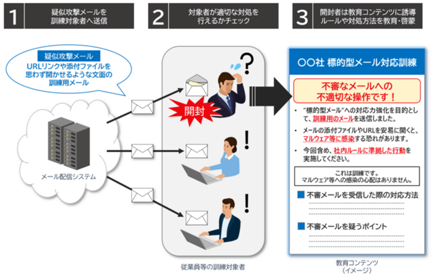 - メール訓練による疑似体験で対処内容の確認