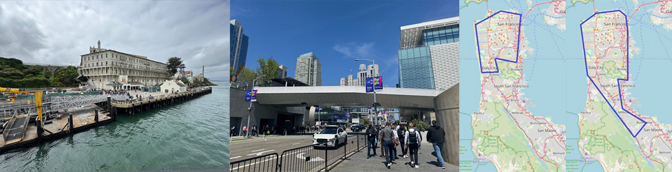 一方、仕事では5月に開催されたRSA Conference 2025(RSAC)に参加し、セキュリティーの最前線を肌で感じてきました。今年のRSACは、セッション内容だけでなく、展示ブースや周辺イベントも大変活気がありました。ITリサーチオフィス(ITR)では技術調査の他に日本からの出張者の方のアテンドも行なうことがあり、Waymo(自動運転タクシー)への試乗体験をアレンジでき、少しですが駐在員としての腕が上がった気持ちになりました。こちらベイエリアでは右下図のようにWaymoの乗車範囲が徐々に拡大中です。