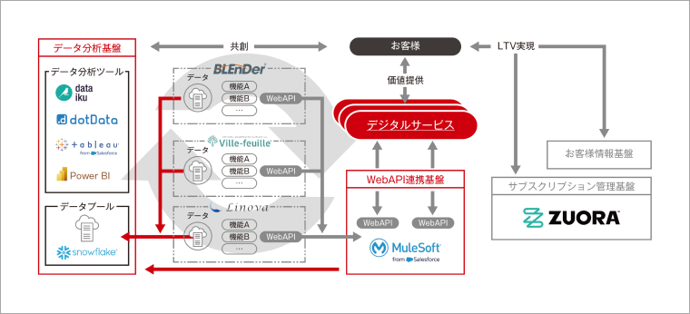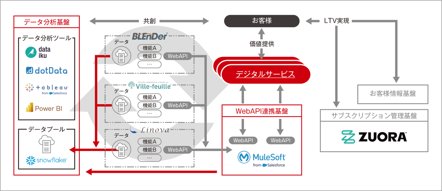 Serendieのデータ分析基盤では、データを集約するデータプールや分析ソフトウエアにグローバルに定評あるサービスを採用しています(図)。