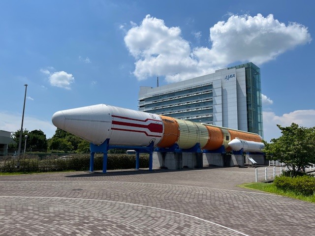 当日つくば駅からバスに乗り宇宙センターに到着すると、実物大のH2ロケットがドーンと鎮座していて圧倒されました。