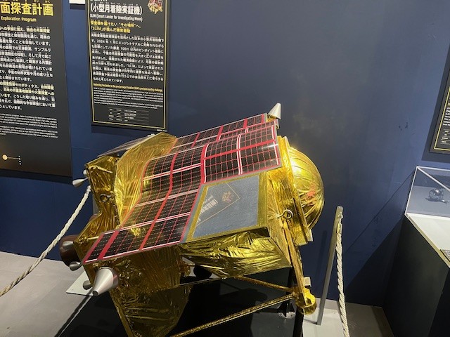 見学ツアーが終わり、展示館「スペースドーム」へ向かいました。実物大の各種人工衛星や、「きぼう」の実物大モデル、ロケットのエンジン、はやぶさ2号、管制技術等々思った以上に圧巻の展示を見て大変満足することができました。