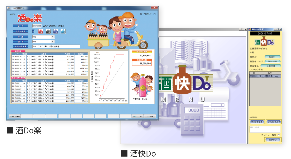 「酒快Do」「酒Do楽」は酒販のスペシャリストが開発した販売管理サービス。また、長年の支援実績から酒販業務に精通したエンジニアが、サービスの導入から運用までを丁寧にサポートします。