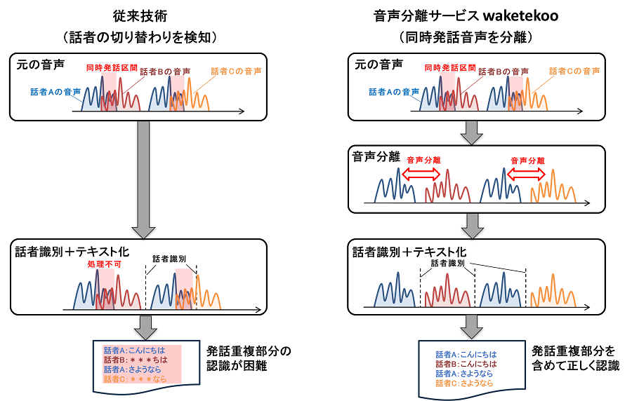 図1 waketekooの音声分離アルゴリズムと従来技術との比較