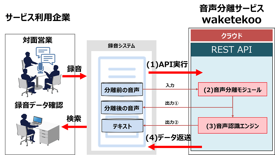 waketekooは三菱電機のAI技術Maisart(マイサート)(注1)を活用しMDISが事業化したもので、他の録音システム等に組み込む「モジュール提供型」及び、音声テキスト化機能をオプションで用意したクラウドサービスである「クラウドAPI型」の2形態による提供を、2025年3月に開始します。