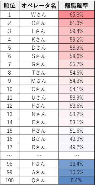 - オペレーター離職の予兆を早期に検知
