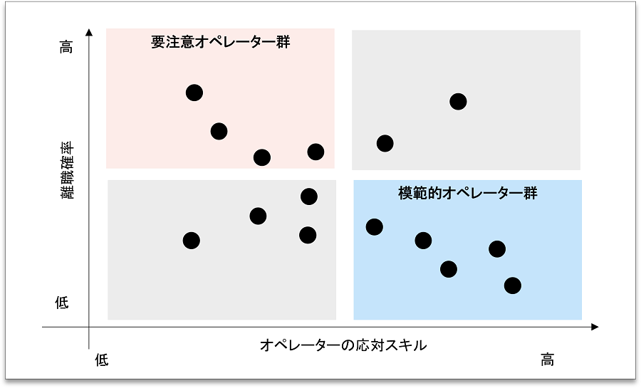 図3 応対スキルと離職確率の組み合わせ表示イメージ