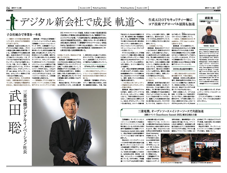 このたび、電波新聞に当社代表取締役 取締役社長であり、三菱電機株式会社の専務執行役 武田聡のインタビュー記事が掲載されましたのでお知らせします。