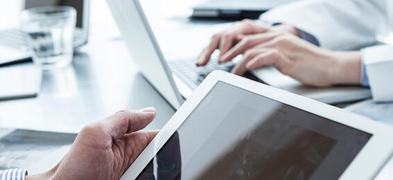 タブレットを使って利用者様の電子サインを登録します。本人確認書類もその場で併せて登録できます。