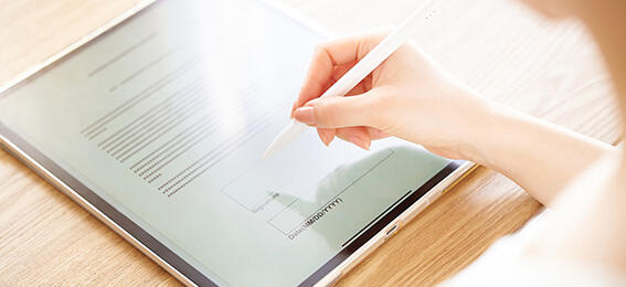 契約時に押印せず、タブレットを使って利用者様の電子サインを登録します。一度登録すると、対面で契約書類に記入する必要がなくなり、遠隔地から電子サインを利用できます。