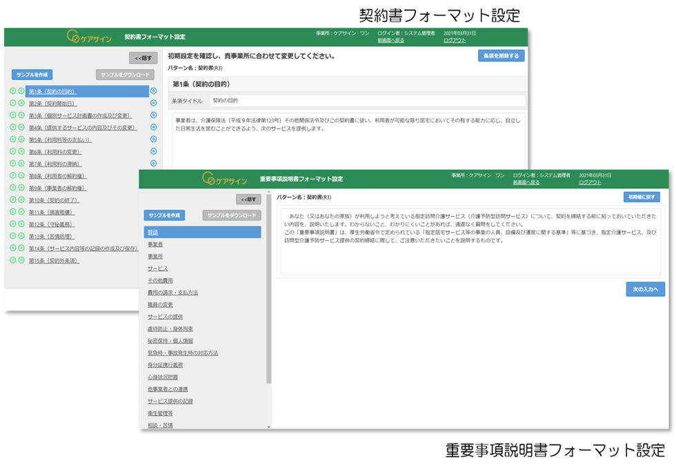 一度登録しておけば、利用者様の契約時に何度でも使用できます。もちろん法改正時に修正もできます。