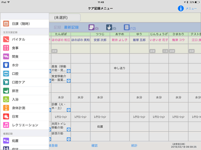 タブレット記録アプリ Care Palette 画面イメージ2