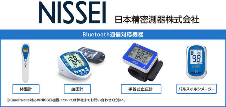 NISSEI(日本精密測器株式会社)の機器と連携することで、バイタルデータを直接「ほのぼの」シリーズに連携できます。