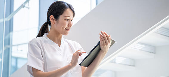 厚生労働省の「医療情報システムの安全管理に関するガイドライン」に適合した高度なセキュリティー基盤を使用しています。さらに、タブレットにはデータを保存しないため、情報漏洩のリスクが低く安全です。