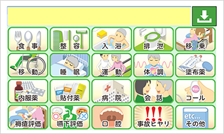 登録したい記録のアイコンを選択するだけで、統一した介護記録が作成できます。