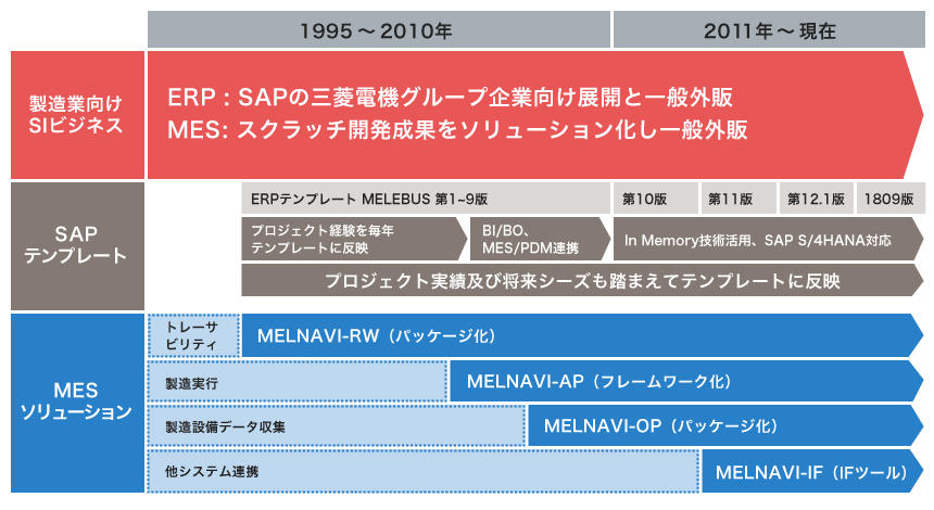 当社では、三菱電機グループのソリューションを幅広くご提供してきた経験と実績があります。 ERPから生産設備まで、工場全体を見据えたMES導入をワンストップでご提供します。