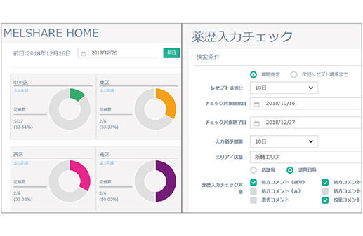 「MELSHARE」は、調剤薬局様向けの情報共有ツールで、薬剤師間での情報共有を効率化し、入力負荷を軽減し、患者さんの待ち時間短縮・信頼度アップに貢献します。