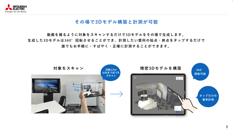 iPhoneで動画を撮るように空間をスキャンするだけで、取得した点群データから3Dモデルを生成し計測できるサービスです。