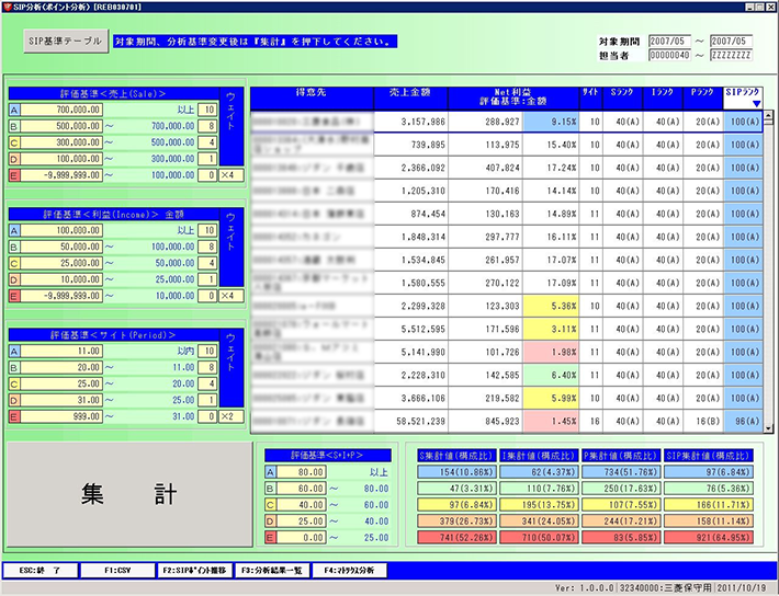 売上高・利益額・サイト日数から得意先をポイント化し、ランク付けができます。