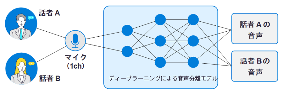 - 複数話者が同時に発話している音声を分離することで、音声データの文字起こしの精度を高めます