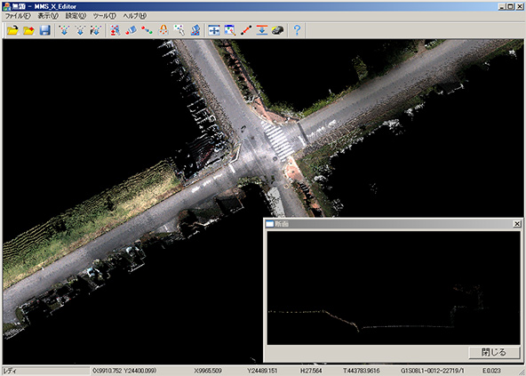 - 高架下、トンネル等の衛星不可視区間の計測時に、従来の測量手法にて計測された地物の位置(ランドマーク)を利用することにより、MMSで計測した座標値の誤差を補正することができ、トンネルや高架下でも高精度な計測が可能です。
